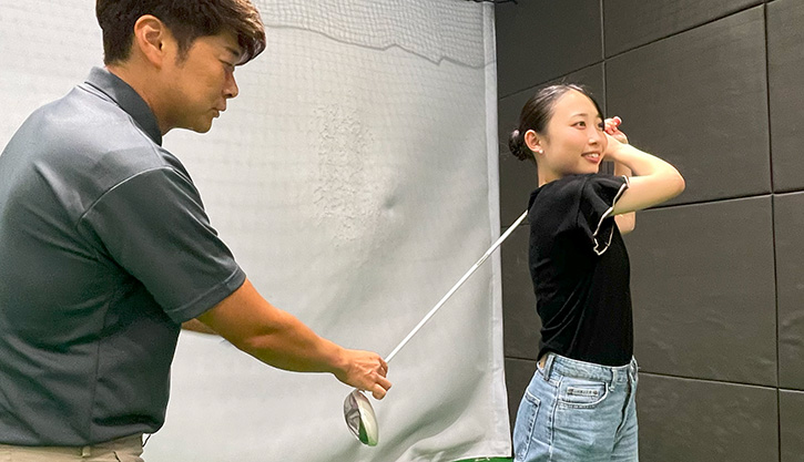 練習モード機能やコースラウンド機能をフル活用して、あらゆるシチュエーションにおいてのゴルフスイングをチェックするスクールプログラム。