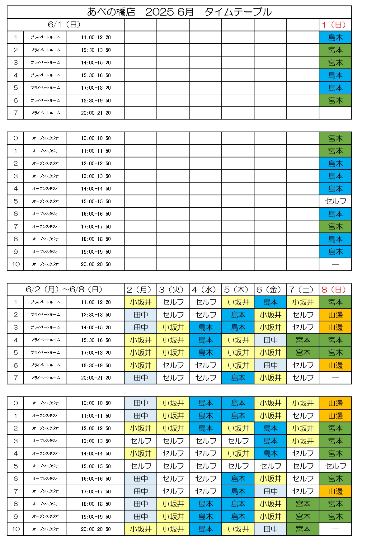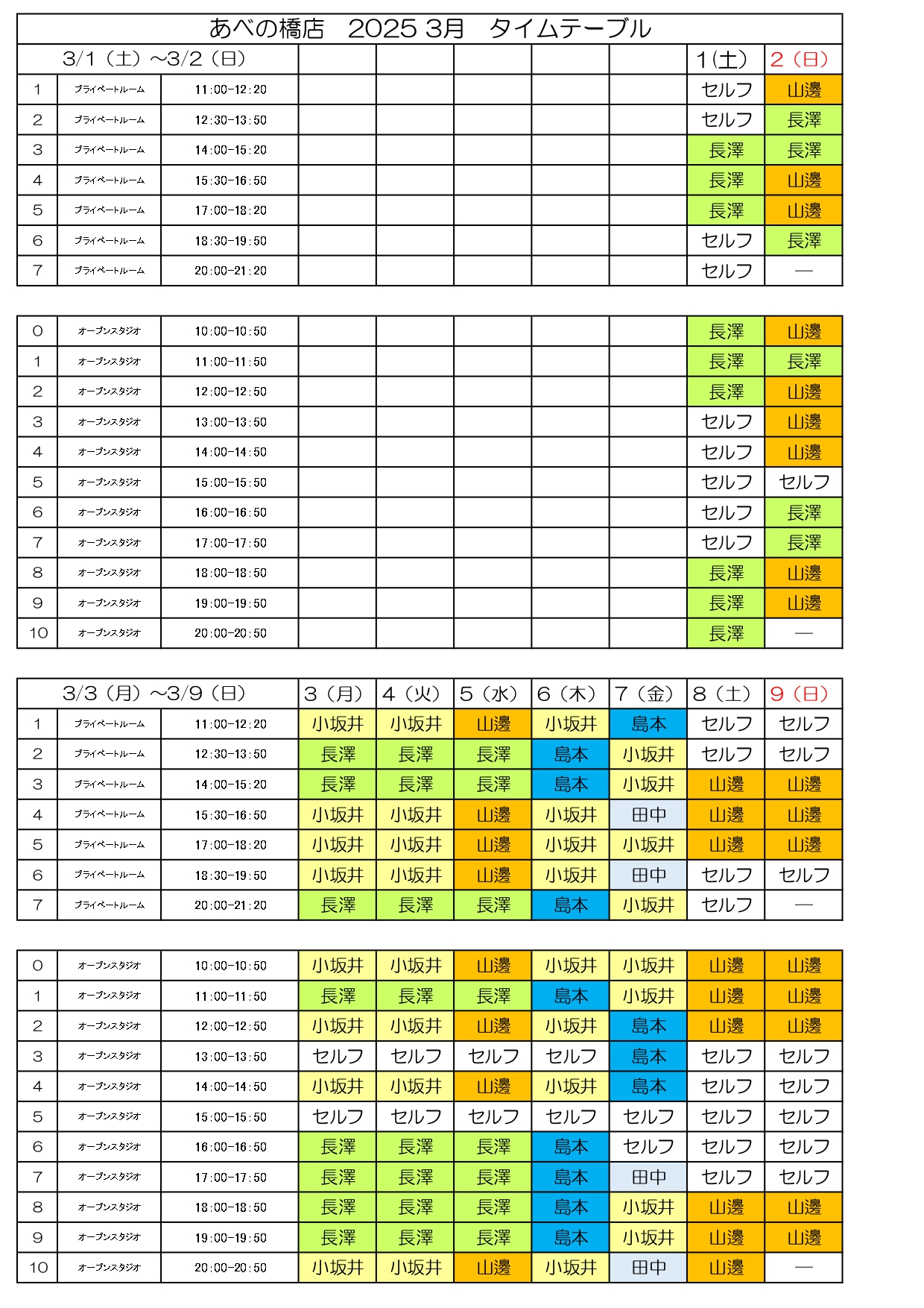 • 最終週のレッスンは、体験を承れない場合がございます。