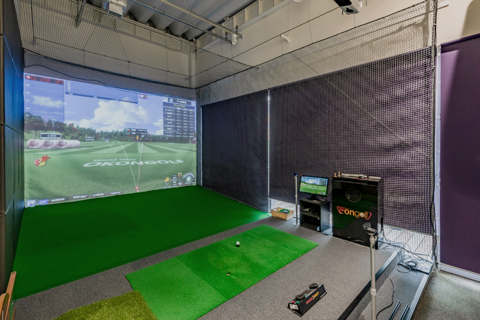 テニスコートと合わせて、最強のプレー環境と自負するゴルフスタジオ。