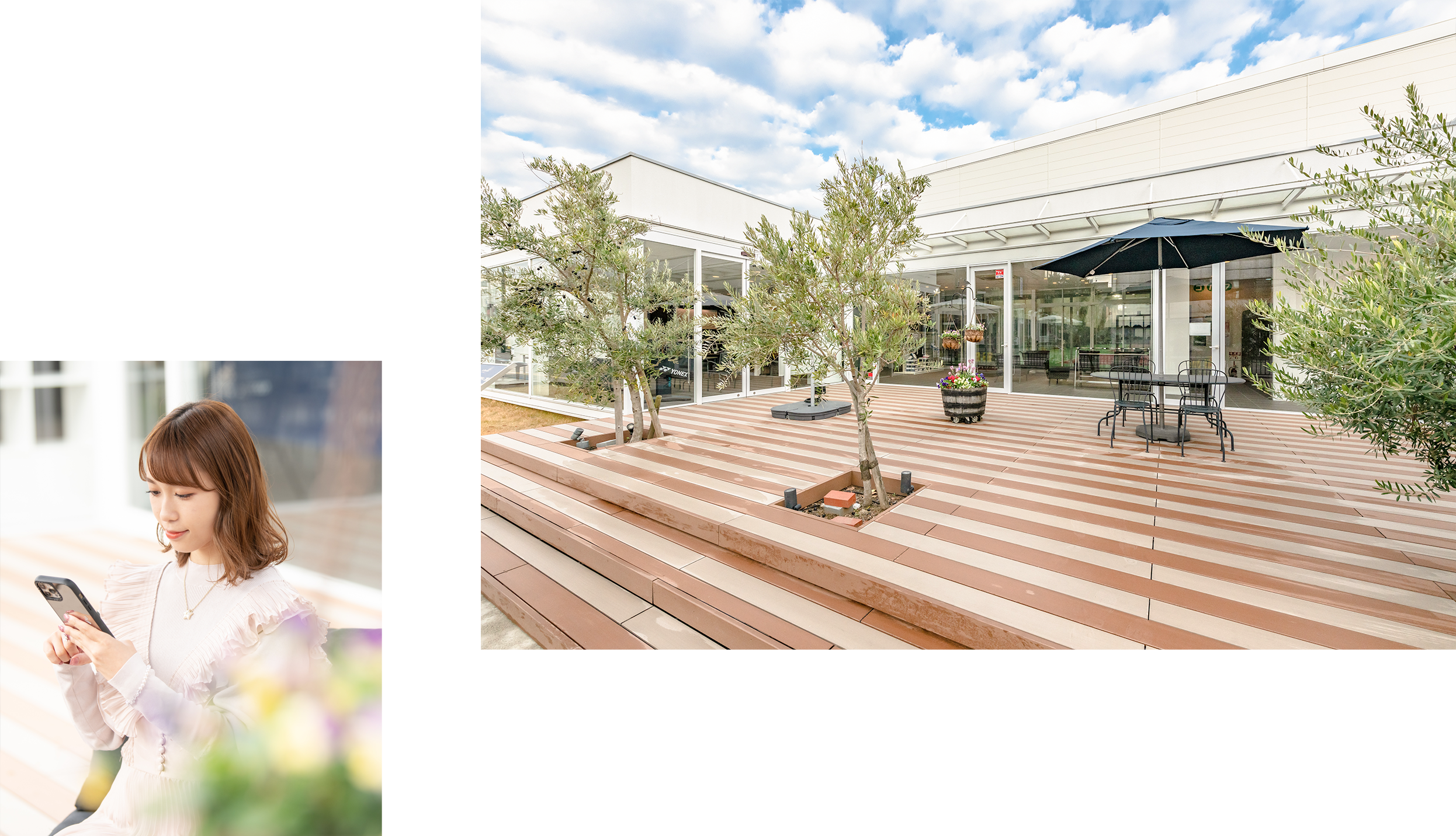 ロビーの外側にはオープンテラスを設置。リゾート感あふれるお洒落でやすらぎのある空間です。