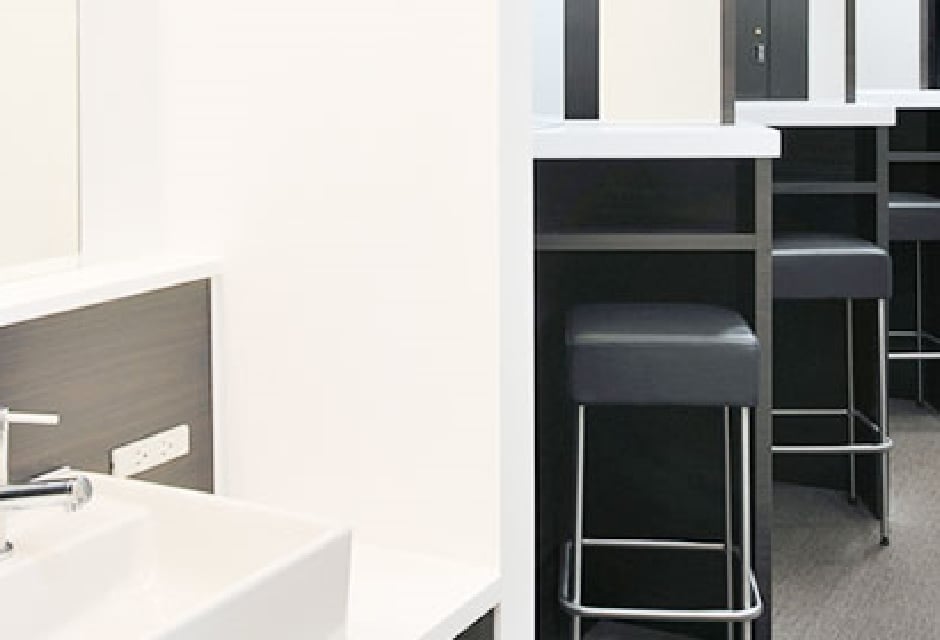 男女ともにロッカールームを完備。清潔なシャワールームに大きな鏡の洗面台、最新の設備が揃っています。
