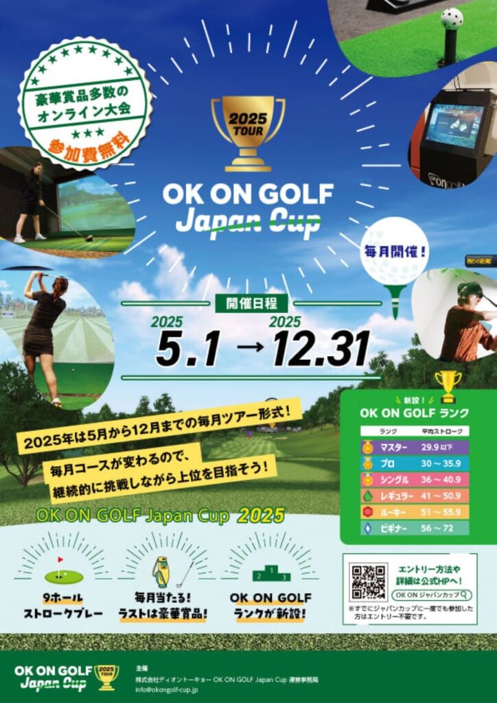 OK ON GOLF Japan Cup豪華商品多数のオンライン大会にエントリー費無料でご参加いただけます。