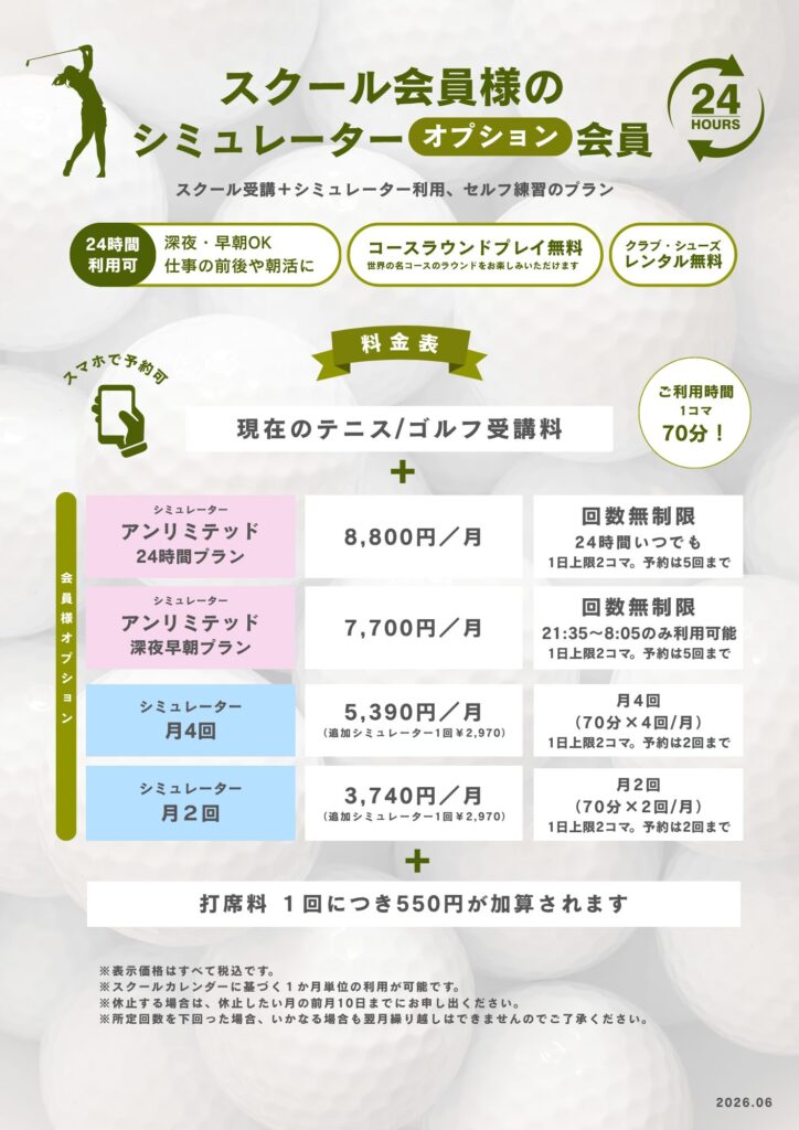 - 料金システムの変更:月額基本料金(会費)とご利用ごとの打席料による二本立て、深夜早朝プランの新設