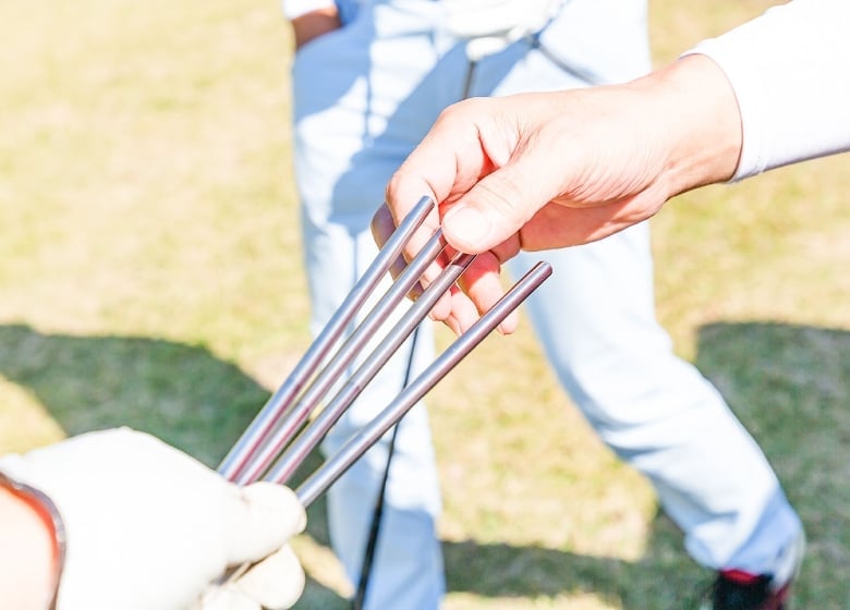 同じティーマークからプレーする人が複数いる場合はティーグラウンドの近くにあるくじ引きで順番を決めましょう。(このくじは大体ホワイトティーの近くにあります。)