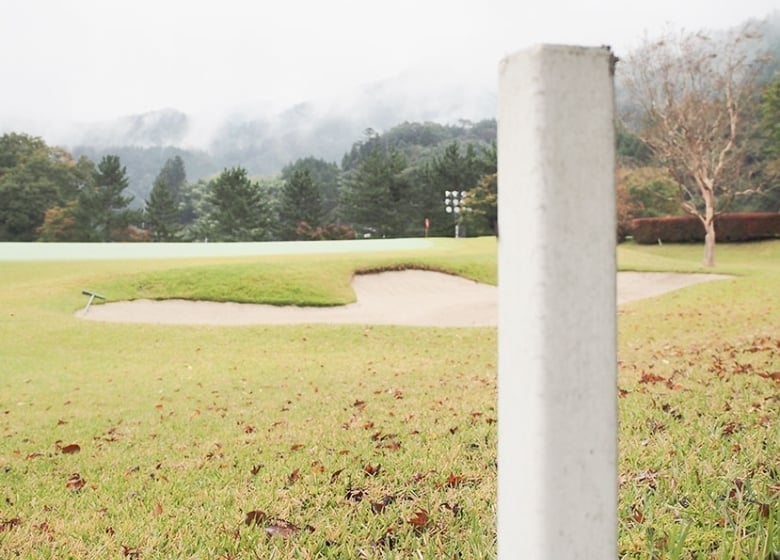 このような白い杭が立っている区域。ここに行くと1打罰しなければなりません。