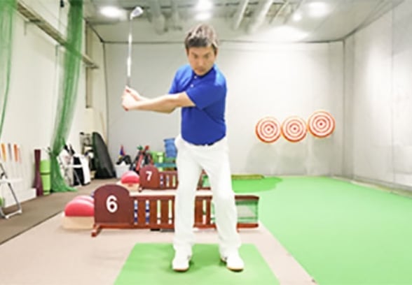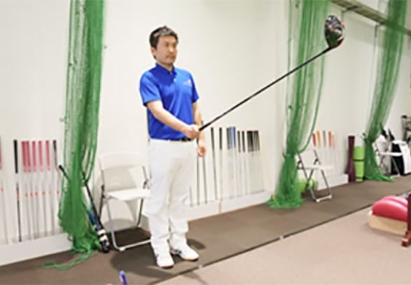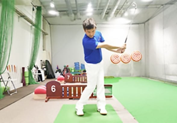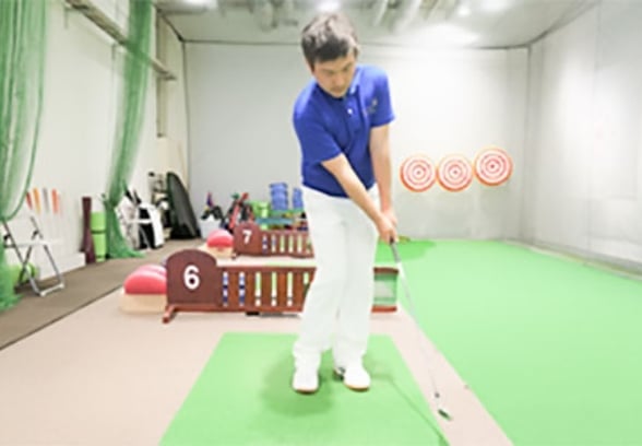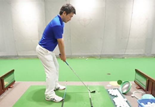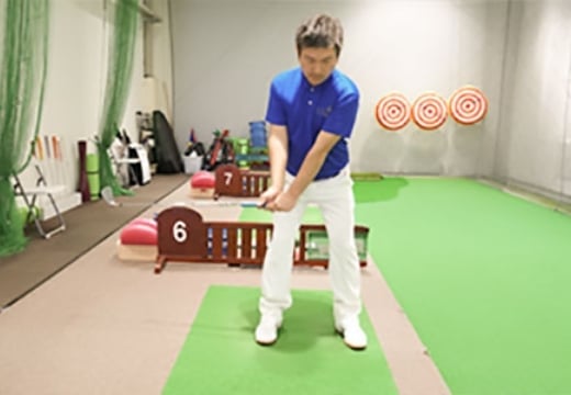 この時はクラブを合わせることに重点を置いているので、体はまだ合わせていません。