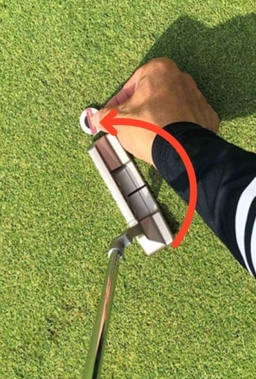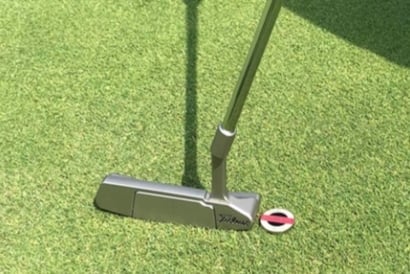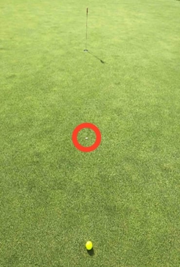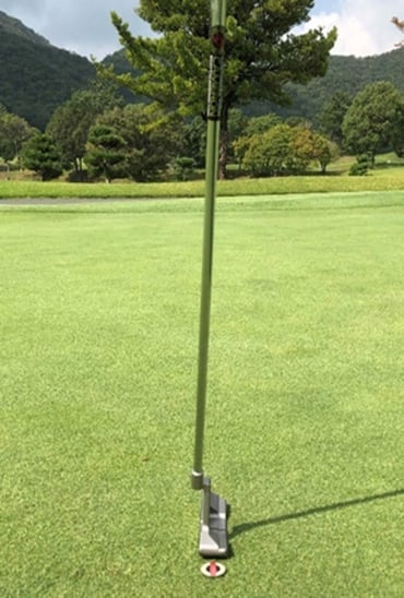 注意! パターのヘッドを置きます。また同じ手順で元の位置に戻してからプレーしてください。そのままプレーしてしまうと誤所からのプレーでペナルティがつきます。マークをせずボールを直接動かすのもペナルティになります。気を付けましょう。