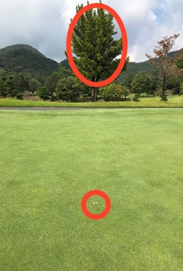 カップ(ピンが立っている)がある場所です。必ずパターを使用しましょう。