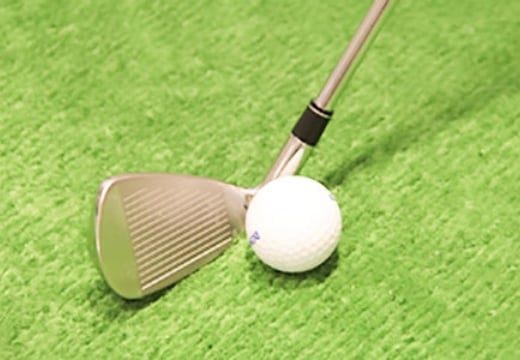 ①で確認した方向に合わせてクラブをボールに合わせます。