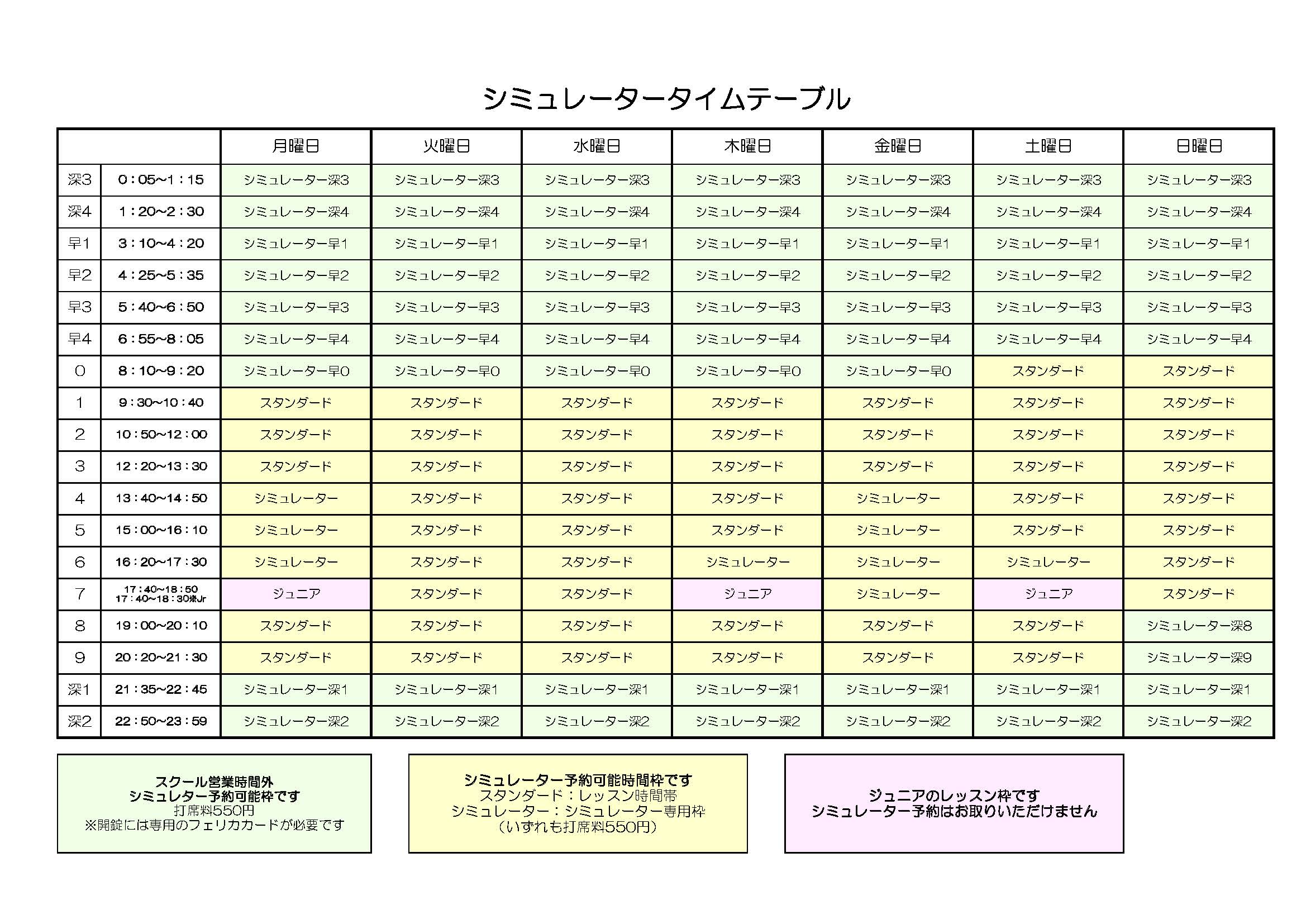 なお、シミュレーター会員は月単位での入会、休会、退会が可能です。月単位はゴルフスクールのカレンダーによるものとします。
