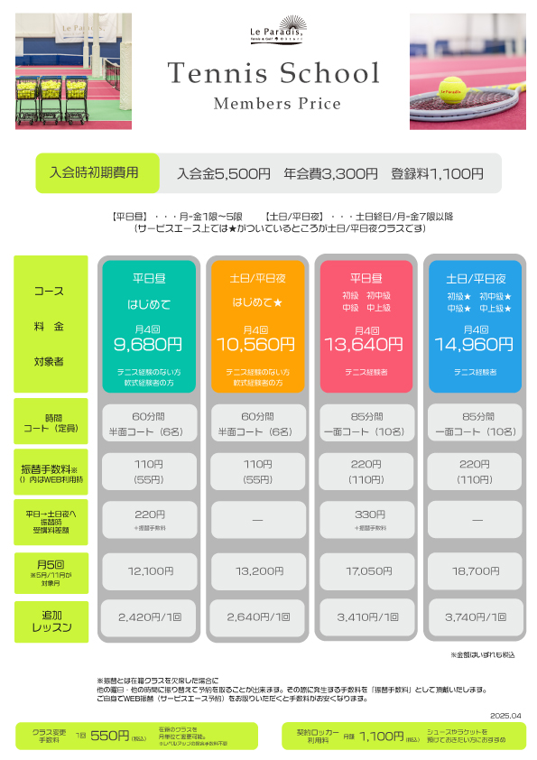 ルパラディ テニス受付
