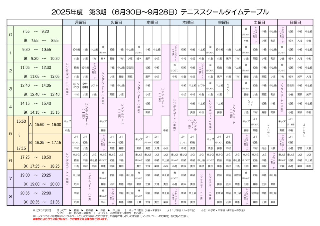 • 入会のクラスレベルは受講いただいたコーチが判断させていただきます。