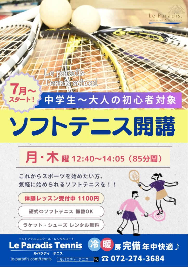 • テニスがはじめての方、ほとんど経験のない方は、はじめてクラスにて承ります。
