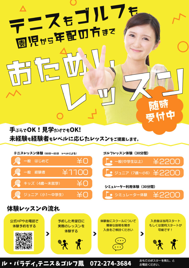 • 体験受講クラスレベルをコーチの判断で変更する事があります。ご了承ください。