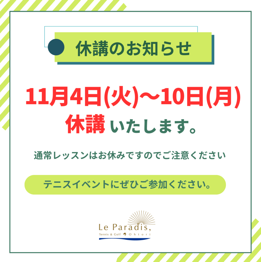 • 最終週のレッスンは、体験を承れない場合がございます。