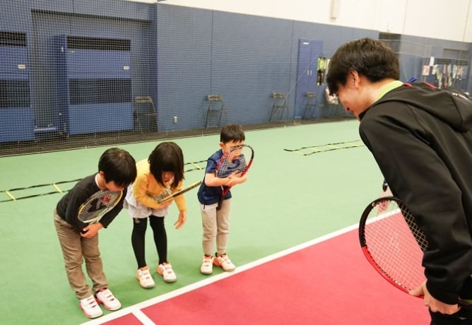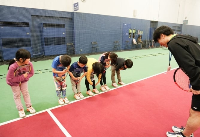 テニスレッスンを通じて、マナー、スポーツマンシップ、リーダーシップを養います。