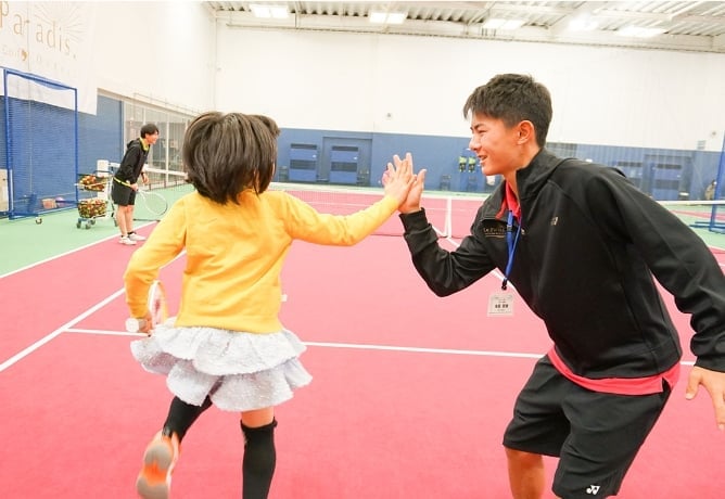 テニスで色々な運動の動作を覚えて脳に格納し、引き出して使うことは、勉強で公式を使って問題を解くことや、自分が置かれた状況に応じて臨機応変な判断、行動ができるようになるのと同様です。運動や勉強はもちろん、人生を強く進んでいくための様々な能力がテニスで身についていきます。